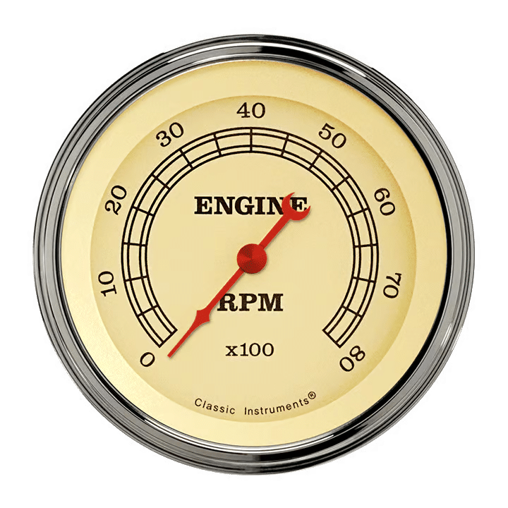 Classic Instruments Vintage 3 3/8″ Tachometer 8000 RPM with Stainless Low Step Bezel Flat Glass Lens